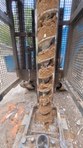 Investigations : Sondages à la tarière , prélèvements et analyses laboratoire.